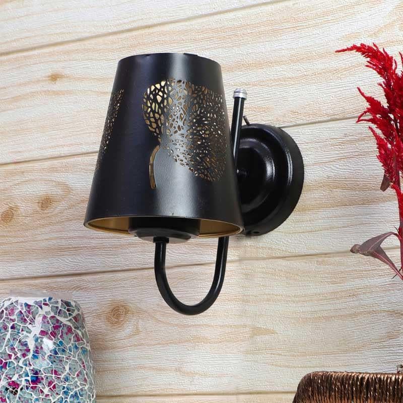 This wall lamp is like a little black dress for your home. Its got a chic black shade with cut-out leaves that turn your walls into a canvas of soft light and shadow. Who wouldnt love that? And its so easy to maintainjust a quick wipe and youre good to go! Imagine this glowing beauty casting gentle patterns as you sip your Sunday chai, windows open to a gentle breeze. Perfect touch, right?