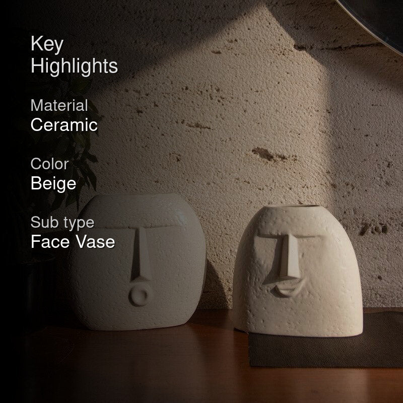 Check out these quirky face vases! They're not just conversation starters, they're like little ceramic buddies for your shelf. Made of sturdy ceramic with a tactile texture and a cool beige finish, they're perfect for adding a dash of personality. What more could you want? But really, these vases are all about charming, minimalist vibes. Imagine them on your desk, brightening your space with a subtle wink. And come on, who doesnt love a vase with a face?