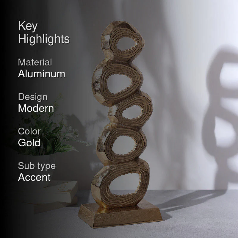 Looking for something to jazz up that dull corner in your room? Check out this modern showpieceits like art and sculpture had a golden lovechild. The stacked rings have an organic feel, and the gold finish? Absolutely stunning. But dont just take my word for it! Imagine it catching the light next to your favorite chair as you sip your morning coffee. Its all about those little moments, right? And lets be honest, who couldnt use a bit more glamour in their life?