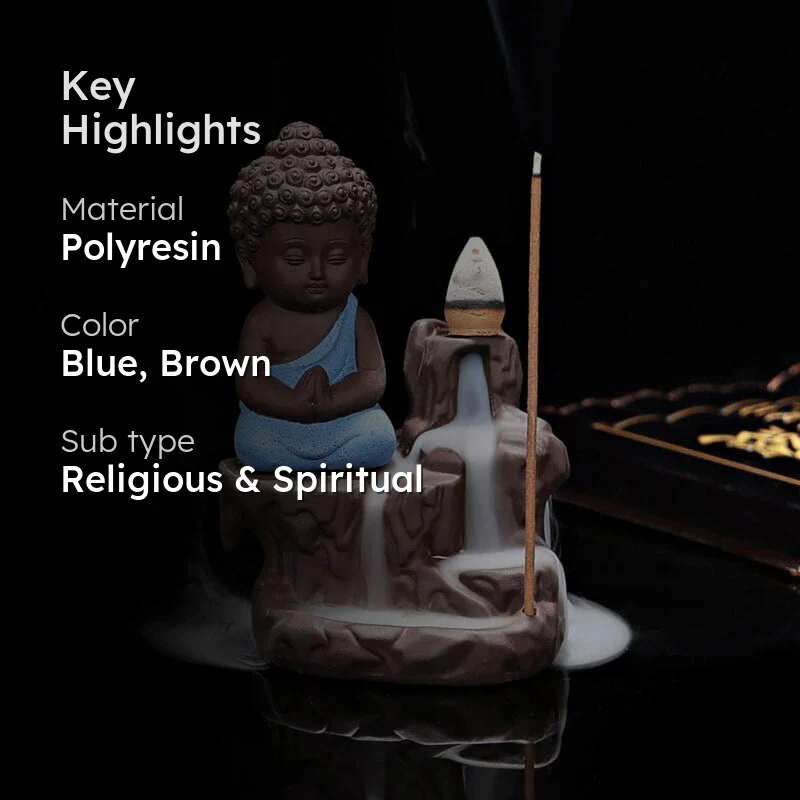 Imagine a tiny Buddha meditating peacefully on your shelf. This little statues got a calming vibe, with its curly-haired head and soft blue robe. Doesnt it look serene? Its like having a slice of zen right at home. But heres the best partit doubles as an incense holder. Place it on your table, light up some incense, and let the tranquility flow. Perfect for those lazy Sundays with a cup of chai, windows open, and peace in the air.