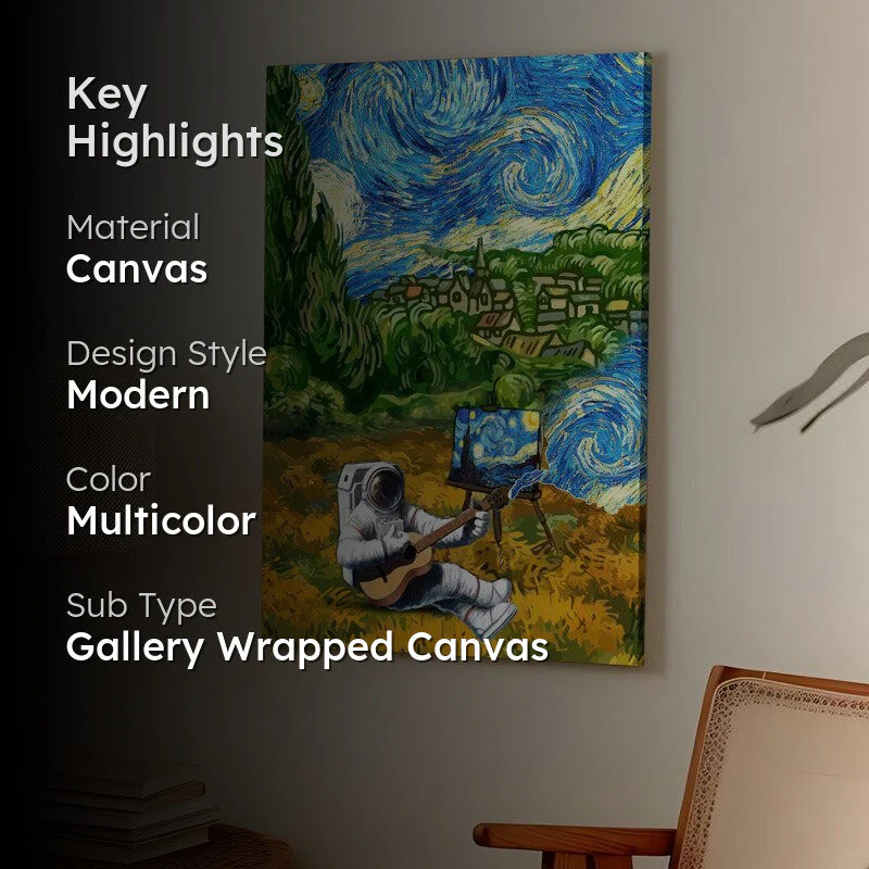 The Astro Starry Night Wall Painting captures the mesmerizing beauty of a starry night, inviting viewers into a tranquil cosmic scene. This artwork is perfect for adding a serene touch to bedrooms, living rooms, or meditation spaces. The rich colors and dreamy designs create a calming atmosphere that encourages relaxation and contemplation. Ideal for those who appreciate the wonders of the universe, this painting enhances your decor with a sense of peace and beauty.