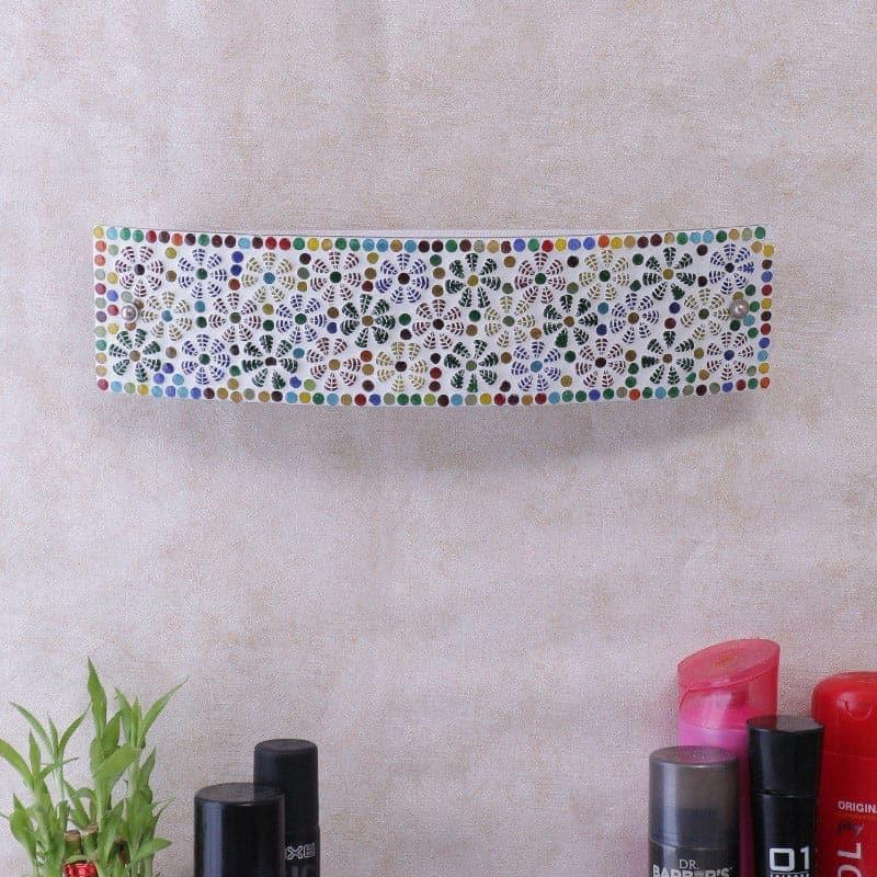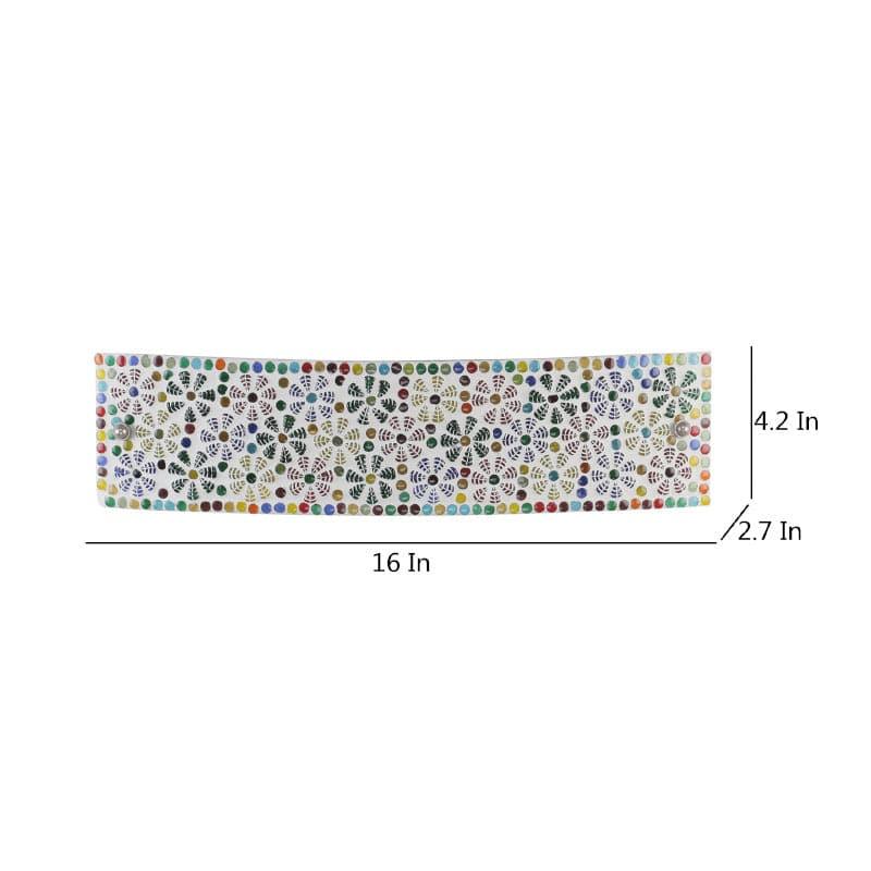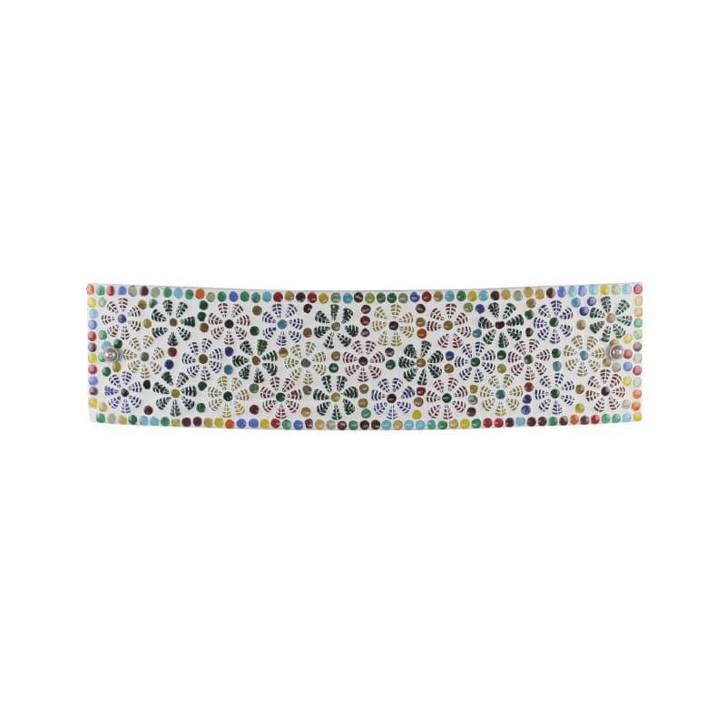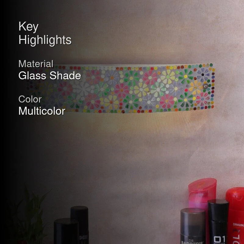 Looking for something to brighten your day? This wall lamp is a pop of color thatll light up more than just your room. With its vibrant mosaic of flowers, its like a garden party on your wall. And heres the thingit's crafted from glass, giving it a classy vibe. Perfect for those lazy evenings when you just want to bask in its warm glow. Imagine this: a rainy afternoon, your favorite book, and this lamp casting cozy patterns on your walls. Bliss!