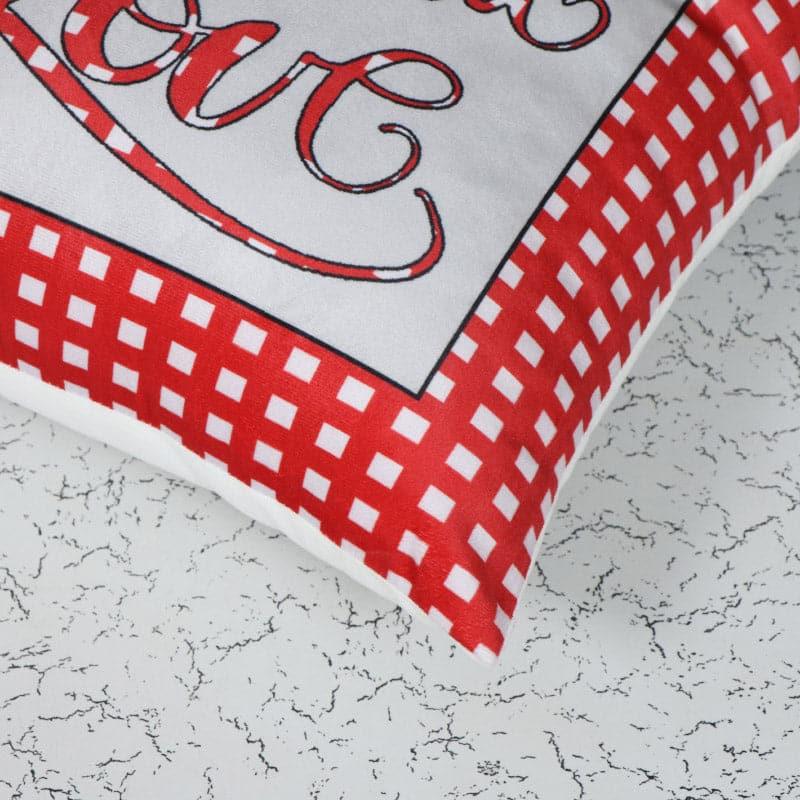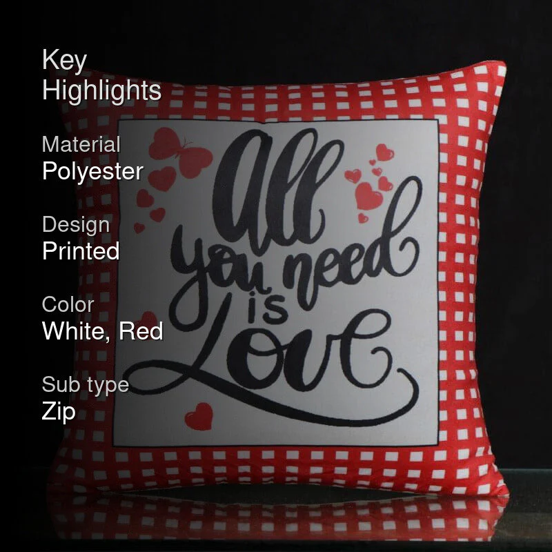 Hey, check this out! This cushion cover is like a warm hug with its playful red and white checkered border and sweet script saying 'All you need is Love.' It's made of soft polyester that'll make you want to snuggle up with a good book. And seriously, who doesn't need a little more love on their couch? The zip closure makes it super easy to pop on or off. Imagine this on a lazy Sunday afternoon, a gentle breeze, and your favorite tunes in the background. Perfect!